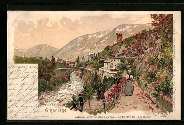Künstler-AK Otto Strützel: Meran, Gilfanlage