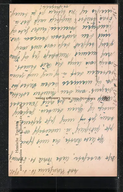 Personenbezogene Daten auf der Rückseite der Karte wurden durch blauen Textmarker unkenntlich gemacht. Die blauen Stellen sind auf die Vorderseite durchgeweicht und wirken sich negativ auf das Postkartenfoto aus