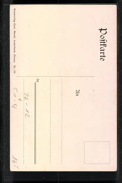 Personenbezogene Daten auf der Rückseite der Karte wurden durch blauen Textmarker unkenntlich gemacht. Die blauen Stellen sind auf die Vorderseite durchgeweicht und wirken sich negativ auf das Postkartenfoto aus