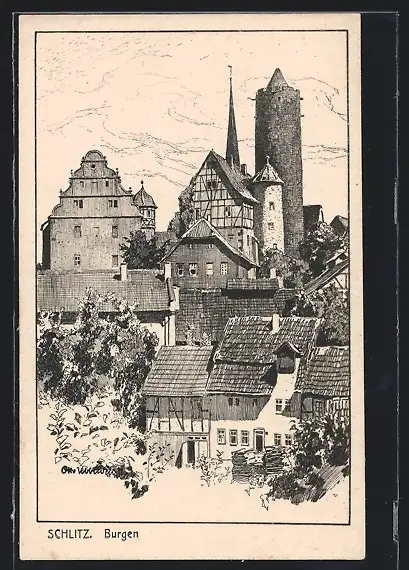Künstler-AK Otto Ubbelohde: Schlitz / Hessen, alter Stadtkern