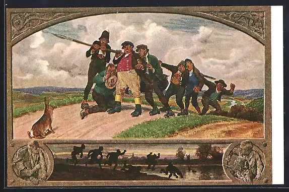 Künstler-AK P. Hey: Märchen, Die sieben Schwaben