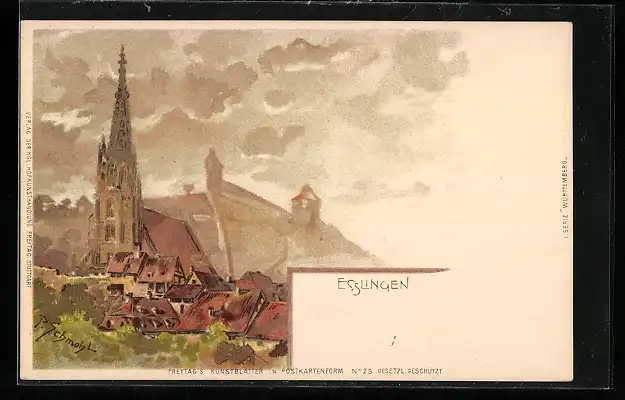 Künstler-AK P. Schmohl: Esslingen / Neckar, Ortsansicht mit Kirche