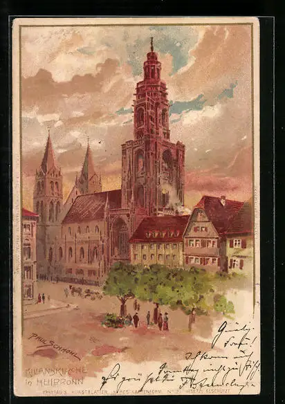 Künstler-AK P. Schmohl: Heilbronn, Ortspartie mit Kilianskirche