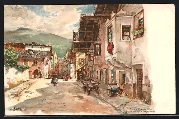 Künstler-AK P. Schmohl: Sterzing, Strassenleben