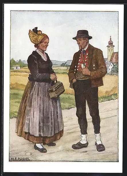 Künstler-AK Paar in Ostmärkischer Tracht