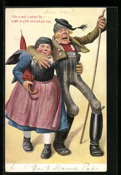 Künstler-AK Paar in bayerischer Tracht