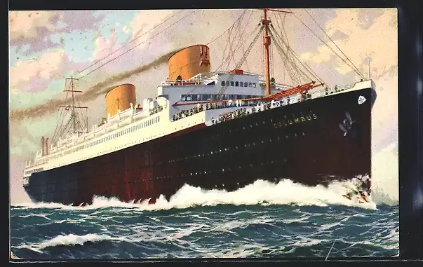Künstler-AK Passagierschiff, Doppelschrauben-Schnelldampfer Columbus in schneller Fahrt