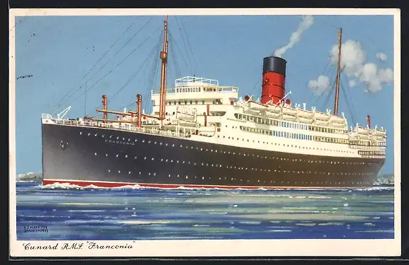 Künstler-AK Passagierschiff Franconia unter Volldampf
