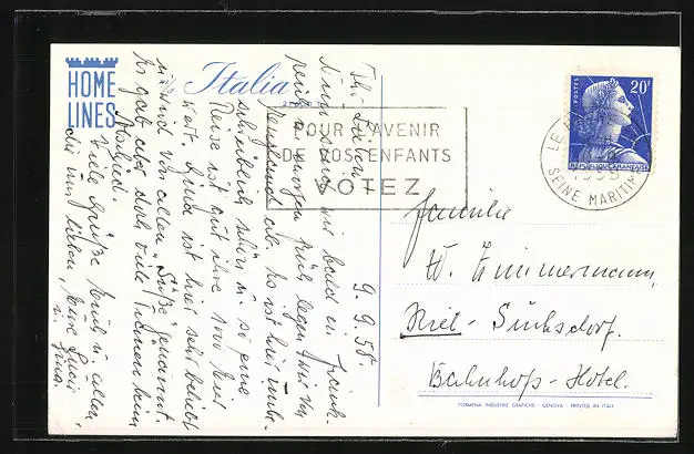 gelaufen 1958, Eckknick re. unten, guter Zustand