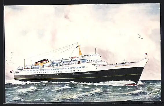 Künstler-AK Passagierschiff MS Koningin Wilhelmina