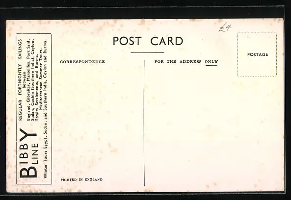Personenbezogene Daten auf der Rückseite der Karte wurden durch blauen Textmarker unkenntlich gemacht. Die blauen Stellen sind auf die Vorderseite durchgeweicht und wirken sich negativ auf das Postkartenfoto aus