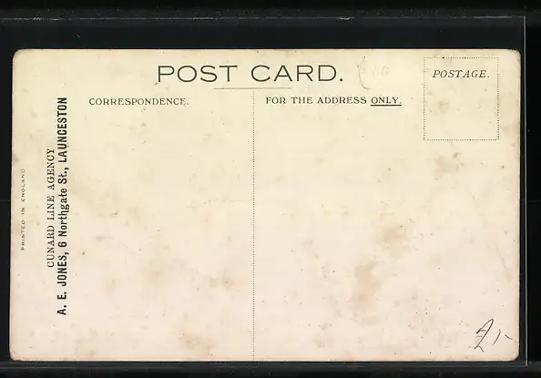 Personenbezogene Daten auf der Rückseite der Karte wurden durch blauen Textmarker unkenntlich gemacht. Die blauen Stellen sind auf die Vorderseite durchgeweicht und wirken sich negativ auf das Postkartenfoto aus