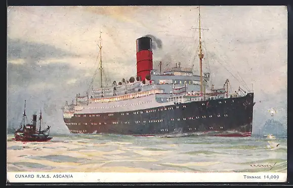 Künstler-AK Passagierschiff RMS Ascania mit Beiboot, Cunard Liner