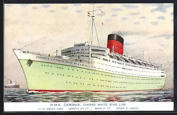 Künstler-AK Passagierschiff RMS Caronia der Cunard White Star Line