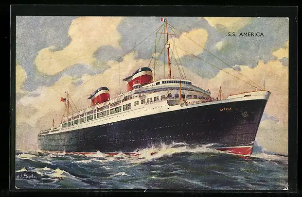 Künstler-AK Passagierschiff S.S. America in voller Fahrt
