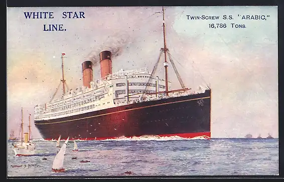 Künstler-AK Passagierschiff S.S. Arabic, White Star Line