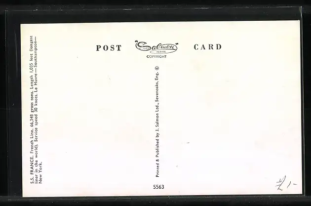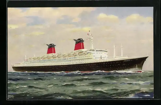 Künstler-AK Passagierschiff SS France der French Line auf hoher See