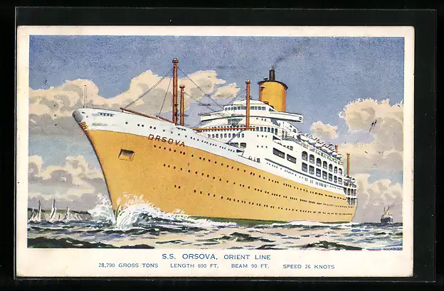 Künstler-AK Passagierschiff SS Orsova pflügt durch das Wasser, Orient Line
