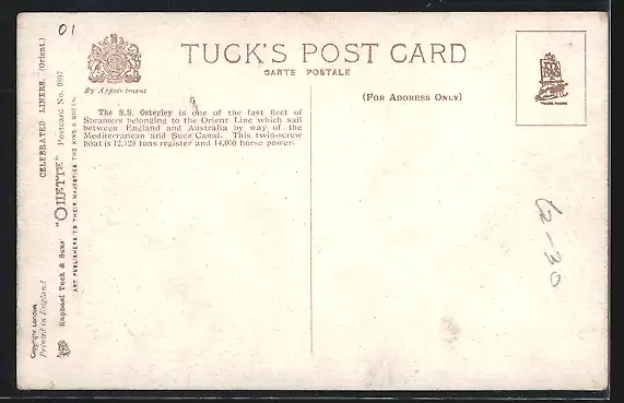 Künstler-AK Passagierschiff S.S. Osterley, Orient Line