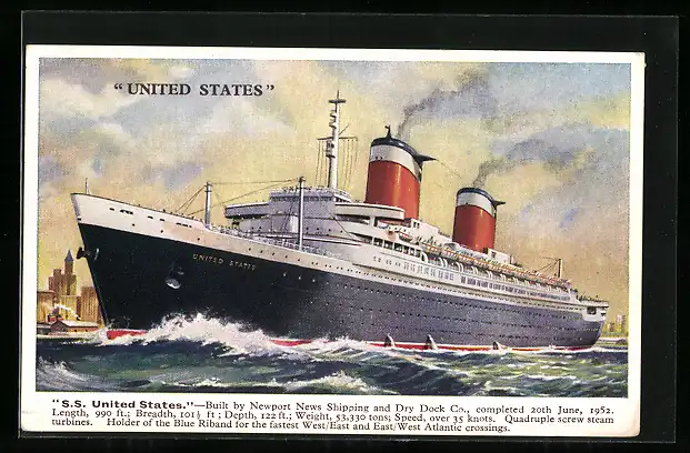 Künstler-AK Passagierschiff S.S. United States vor einer Küste