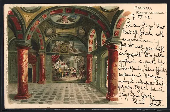 Künstler-AK Passau, Blick in den Rathaussaal