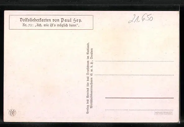 Künstler-AK Paul Hey: Volksliederkarte Nr. 72: Ach, wie ist's möglich dann