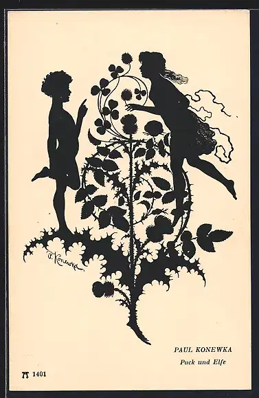 Künstler-AK Paul Konewka: Schattenbild, Puck und Elfe