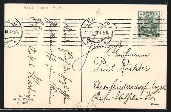 Künstler-AK Pauli Ebner: Glückliches Neujahr!