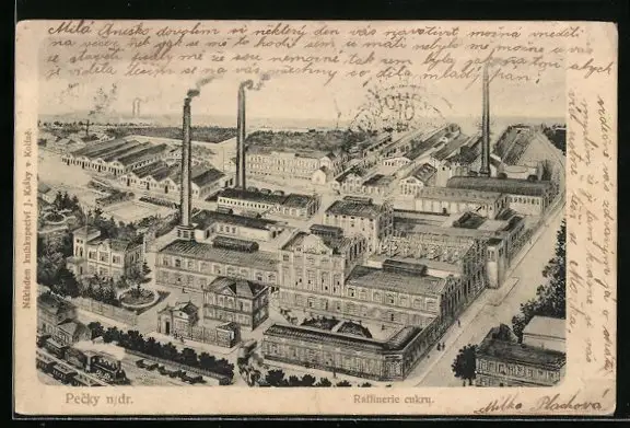 Künstler-AK Pecky n. Dr., Raffinerie cukru