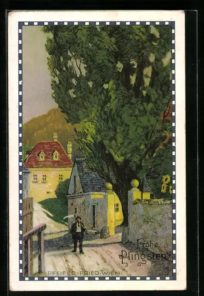 Künstler-AK Pfeifer-Fried: Bauer mit Sense, Pfingstgruss