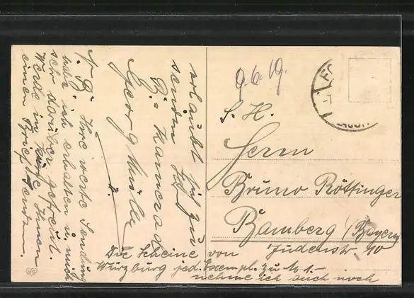 alte Ansichtskarte, gelaufen, Briefmarke entfernt, guter Zustand