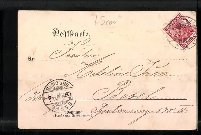alte Ansichtskarte, gelaufen 1904, Eckknick unten li., Stempelspur, guter Zustand