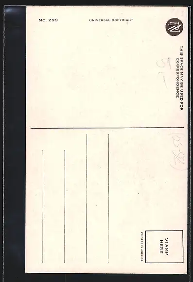 Personenbezogene Daten auf der Rückseite der Karte wurden durch blauen Textmarker unkenntlich gemacht. Die blauen Stellen sind auf die Vorderseite durchgeweicht und wirken sich negativ auf das Postkartenfoto aus