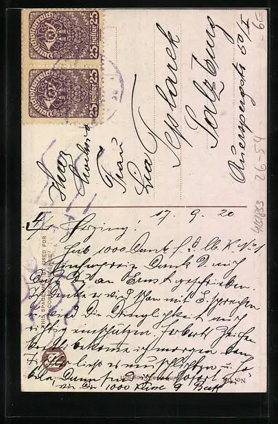 alte Ansichtskarte, gelaufen 1920, Eckknick unten links, guter Zustand