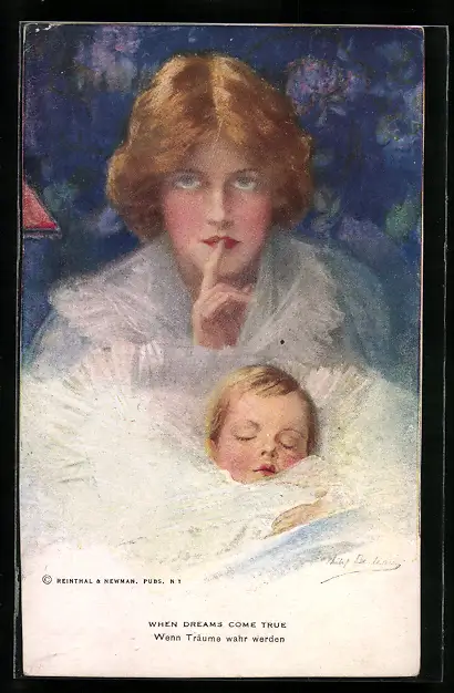 Künstler-AK Philip Boileau: Wenn Träume wahr werden, Junge Mutter mit Baby
