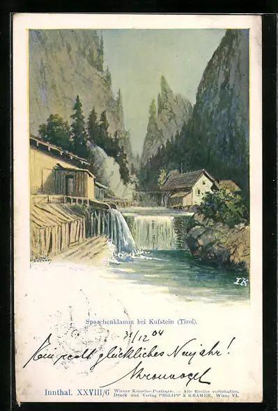 Künstler-AK Philipp + Kramer Nr.: Kufstein, Sparchenklamm