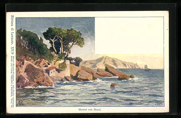 Künstler-AK Philipp + Kramer Nr. XV /9: Nervi, Strand von Nervi