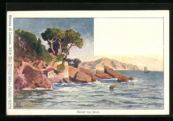 Künstler-AK Philipp + Kramer Nr. XV /9: Nervi, Strand von Nervi