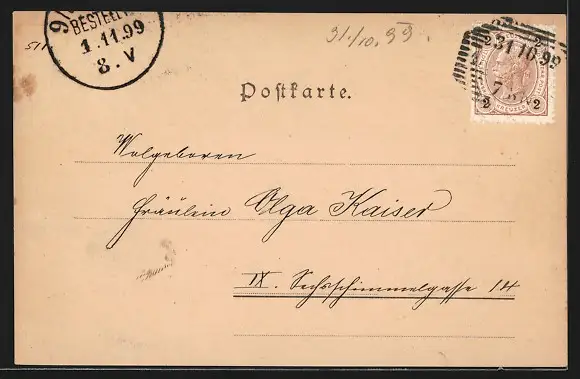 alte Ansichtskarte, gelaufen 1899, guter Zustand