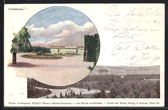 Künstler-AK Philipp + Kramer Nr. XXXIV /7: Schönbrunn, Ortspartien