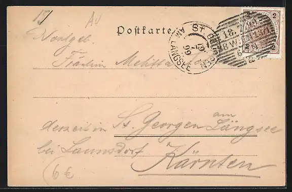 alte Ansichtskarte, gelaufen 1899, guter Zustand