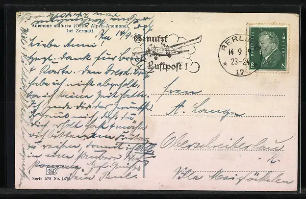 Künstler-AK Photochromie Nr. 1472: Zermatt, gelbe Alpen-Anemone