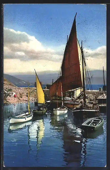 Künstler-AK Photochromie Nr.: Hafenpartie mit Segel- und Ruderbooten
