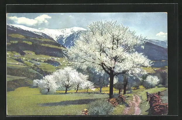 Künstler-AK Photochromie Nr.2712: Obstblüte in Tirol