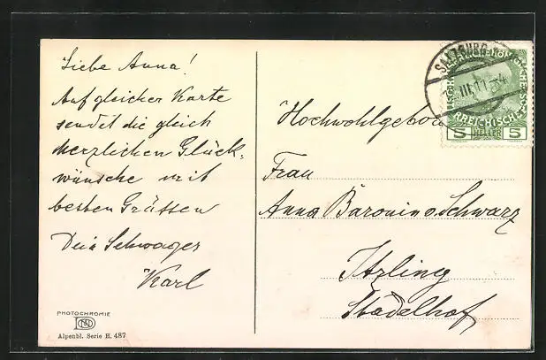 alte Ansichtskarte, gelaufen 1911, guter Zustand
