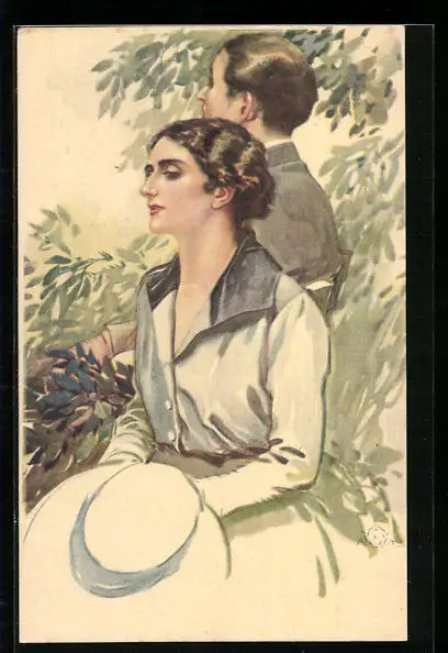 Künstler-AK Plantikow: Dame und Herr schweigen sich an