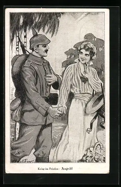 Künstler-AK Plantikow: Krieg im Frieden: Angriff
