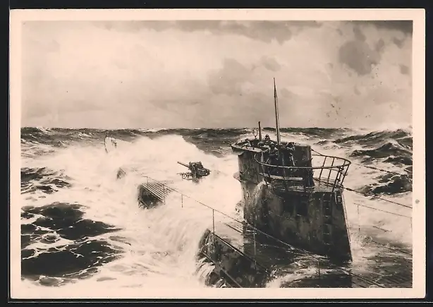Künstler-AK Plantikow: U-Boot im Atlantik