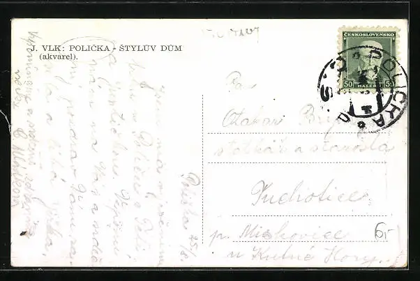 Künstler-AK Policka, Styluv dum