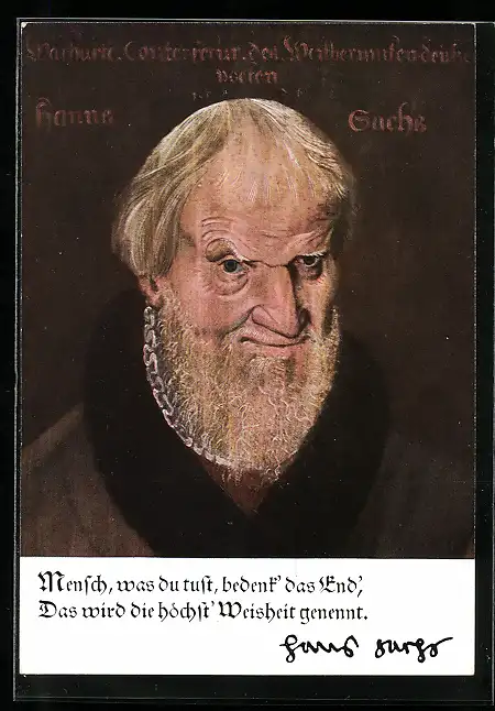 Künstler-AK Porträt von einem düster blickenden Hans Sachs